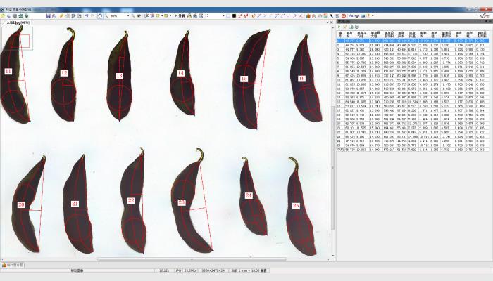 (9)能自動測量油菜、大豆等果莢的果柄、果身、果喙部分粗細(xì)、長、弧長、玄高等參數(shù)。