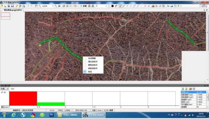 7、基于人工智能深度學習的原位土培根系圖自動識別提取,自動識別提取土培原位根系量≥80%(時間僅約2分鐘),極大減少交互引導修正分析根系的工作量。可對原位土培根系圖像進行交互引導分析、鎖定編輯根系路徑、修正根系的長短、粗細、位置等。具有鼠標編輯點的跟隨放大鏡。能自動拼接多張原位根系圖。