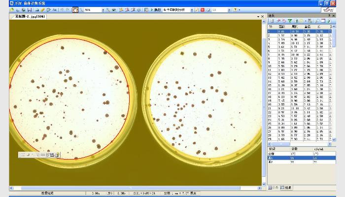 6、★自動分割相互成片粘連的長形、圓形等菌落目標(biāo),用戶可選擇分割或不分割。還可手動分割、合并菌落目標(biāo)圖像。鼠標(biāo)點(diǎn)擊修正,無痕剔除網(wǎng)格及文字,自動剔除雜質(zhì),有效支持復(fù)雜微生物統(tǒng)計,符合GB4789.2-2016的參數(shù)自動換算特性。