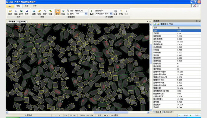 5、可大批量自動(dòng)分析處理與輸出結(jié)果。與國(guó)標(biāo)GB/T1350稻谷、GB/T17891優(yōu)質(zhì)稻谷或GB1354-2018大米、農(nóng)業(yè)部新標(biāo)準(zhǔn)【大米】NY/T2334-2013、大米粒型分類判定LS/T6116-2016、糧食行業(yè)標(biāo)準(zhǔn) 大米LS/T 3247—2017、GB/T 35881-2018糧油檢驗(yàn) 稻谷黃粒米含量測(cè)定圖像分析法等標(biāo)準(zhǔn)相對(duì)應(yīng),檢測(cè)各項(xiàng)指標(biāo)的質(zhì)量比和粒數(shù)比。