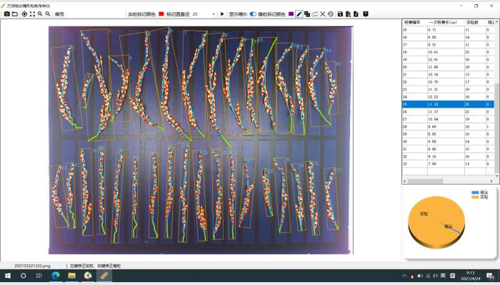 5、★自動(dòng)數(shù)粒誤差<±2.0%,極少量添加、刪除修正,可達(dá)100%正確。各級(jí)枝梗長(zhǎng)的自動(dòng)測(cè)量誤差<±1.5mm,可鼠標(biāo)編輯修正以接近100%正確。