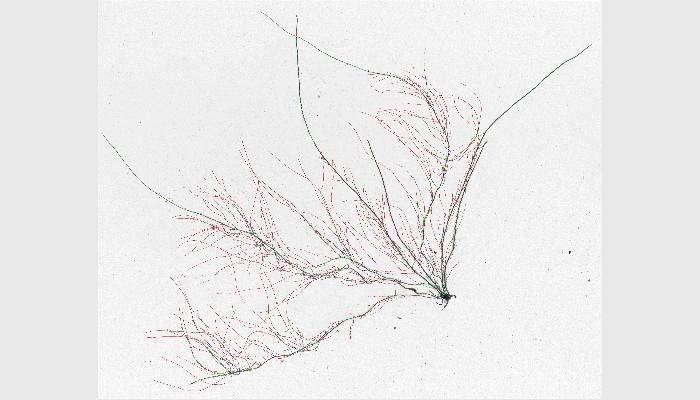 (4)能進(jìn)行根系的拓?fù)浞治?,自動確定根的連接數(shù)、關(guān)系角等,還能單獨(dú)地自動分析主根或任意一支側(cè)根的長度和分叉數(shù)等,可單獨(dú)顯示標(biāo)記根系的任意直徑段相應(yīng)各參數(shù)(分檔數(shù)、檔直徑范圍任意可改,可不等間距地自定義),并能進(jìn)行根的分叉裁剪、合并、連接等修正,修正操作能回退,以快速獲得100%正確的結(jié)果。