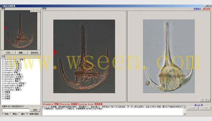 (1)★中文、拉丁文雙語顯示的浮游生物專家圖庫:藻類共15個門、1679個屬、15332個種。涵蓋中國各流域、海域的常見藻類。