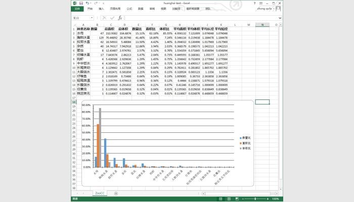 (6)可分析統(tǒng)計(jì)每類浮游動(dòng)物的數(shù)量、面積、體積、及其占比;對(duì)各分類進(jìn)行排序及柱狀圖顯示占比情況。